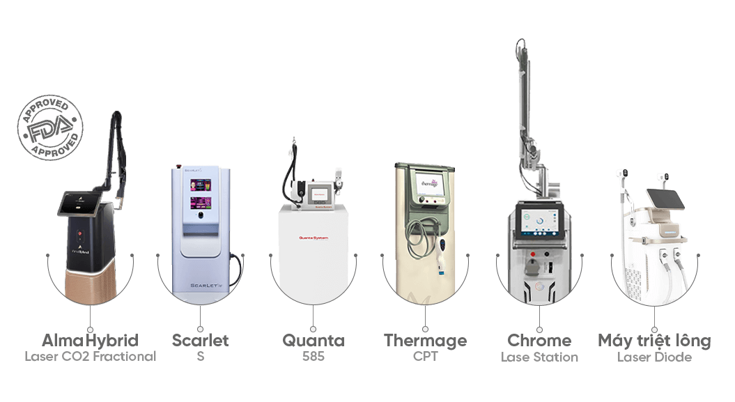 Đỉnh cao công nghệ Laser CO2 Fractional, Laser màu ruby, Tái tạo màng đáy,... giúp se khít lỗ chân lông, trắng sáng da, làm mờ nếp nhăn và săn chắc da hiệu quả nhanh chóng và an toàn.